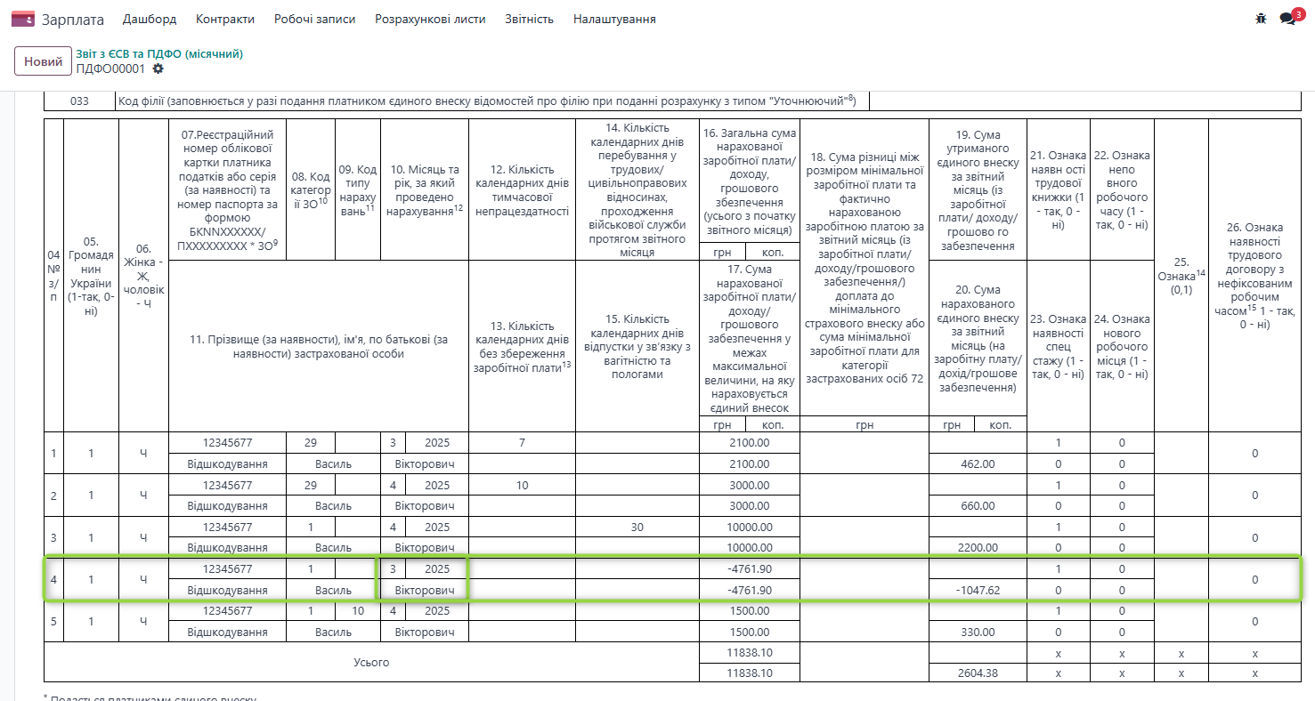 Формування звітності при коригуванні заробітної плати