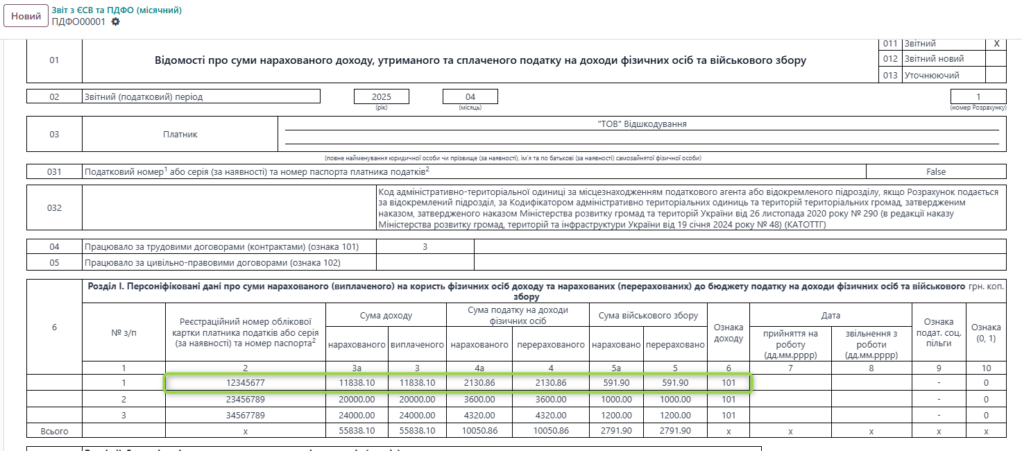 Тому у Дод. 1 Звітності ЄСВ та ПДФО гр. 17 та гр. 20 - не заповнюється