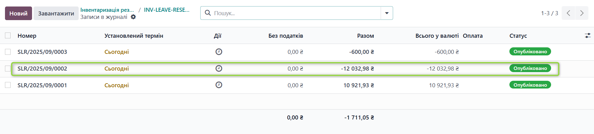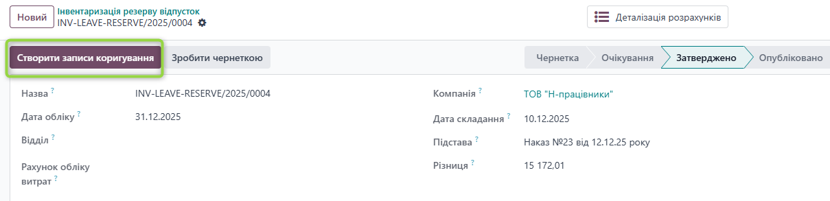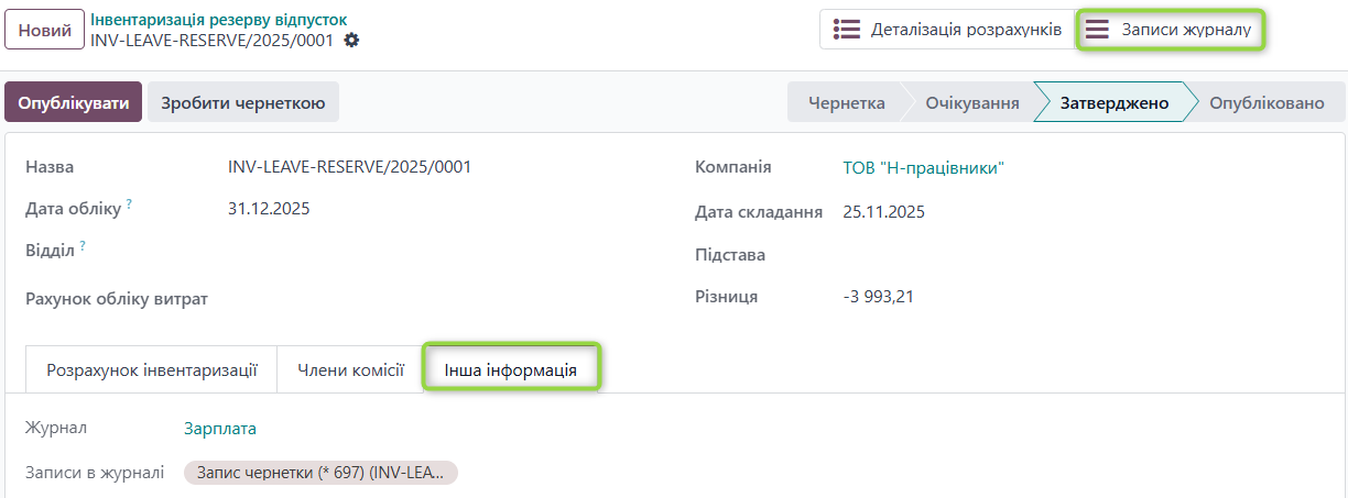 Формуються записи коригування та створюється смарт-кнопка “Записи журналу”
