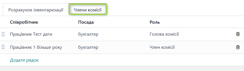 - Вкладка "Рядки інвентаризації" містить розрахункові поля та дані по інвентаризаційному розрахунку;