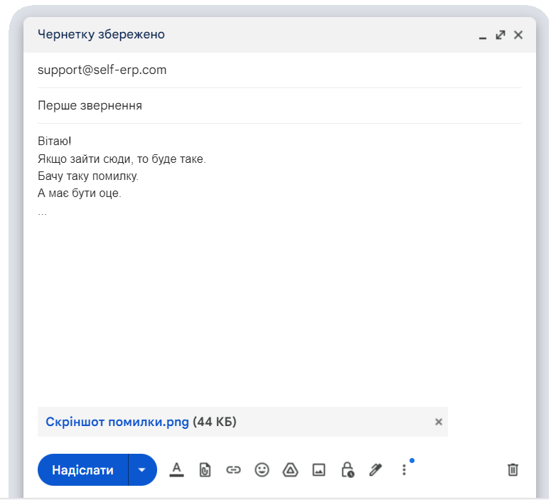 - Повідомити про проблему написавши на адресу - support@self-erp.com.