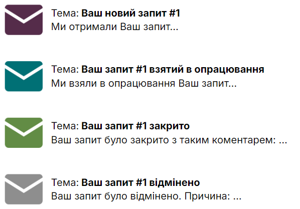 В ході опрацювання запиту Ви отримуєте сповіщення на пошту.