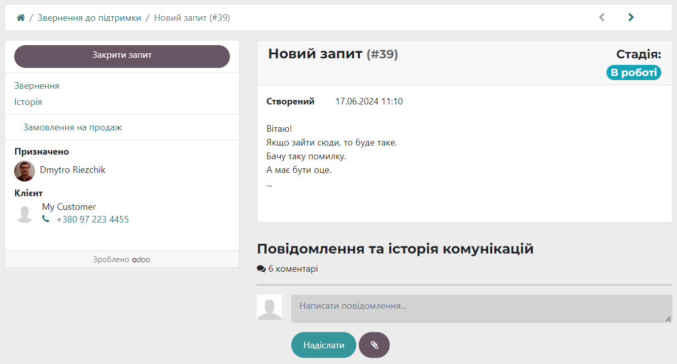 Нотатка! У випадку створення звернення через форму, деякі поля, такі як Ім'я/Емейл/Компанія можуть бути заповнені автоматично, ви можете вказувати інші значення за потреби.