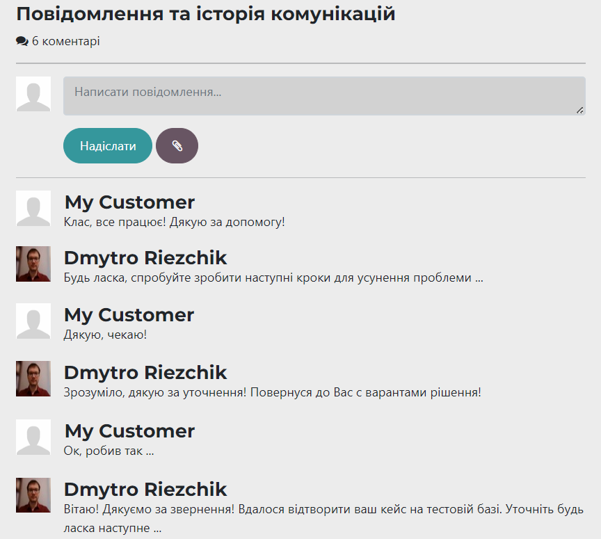 Ви можете перейти до певного звернення для перегляду комунікації. Щоб додати коментар, відправте відповідь на лист, або пишіть відповідь прямо у зверненні на Порталі.