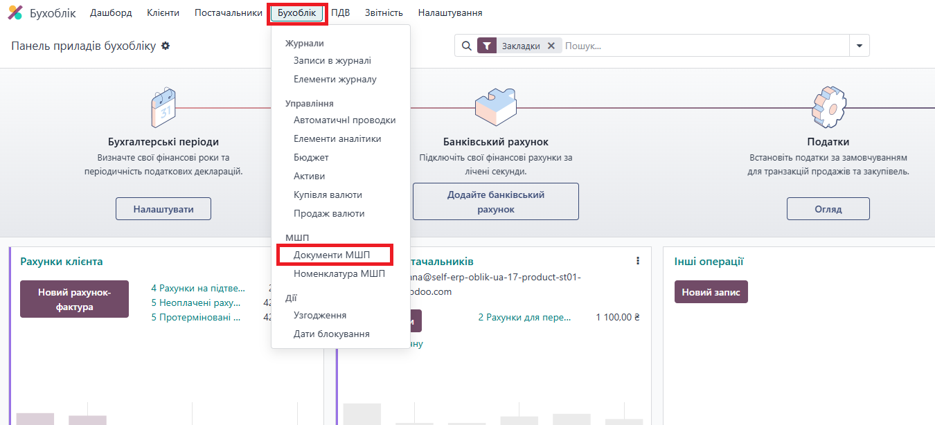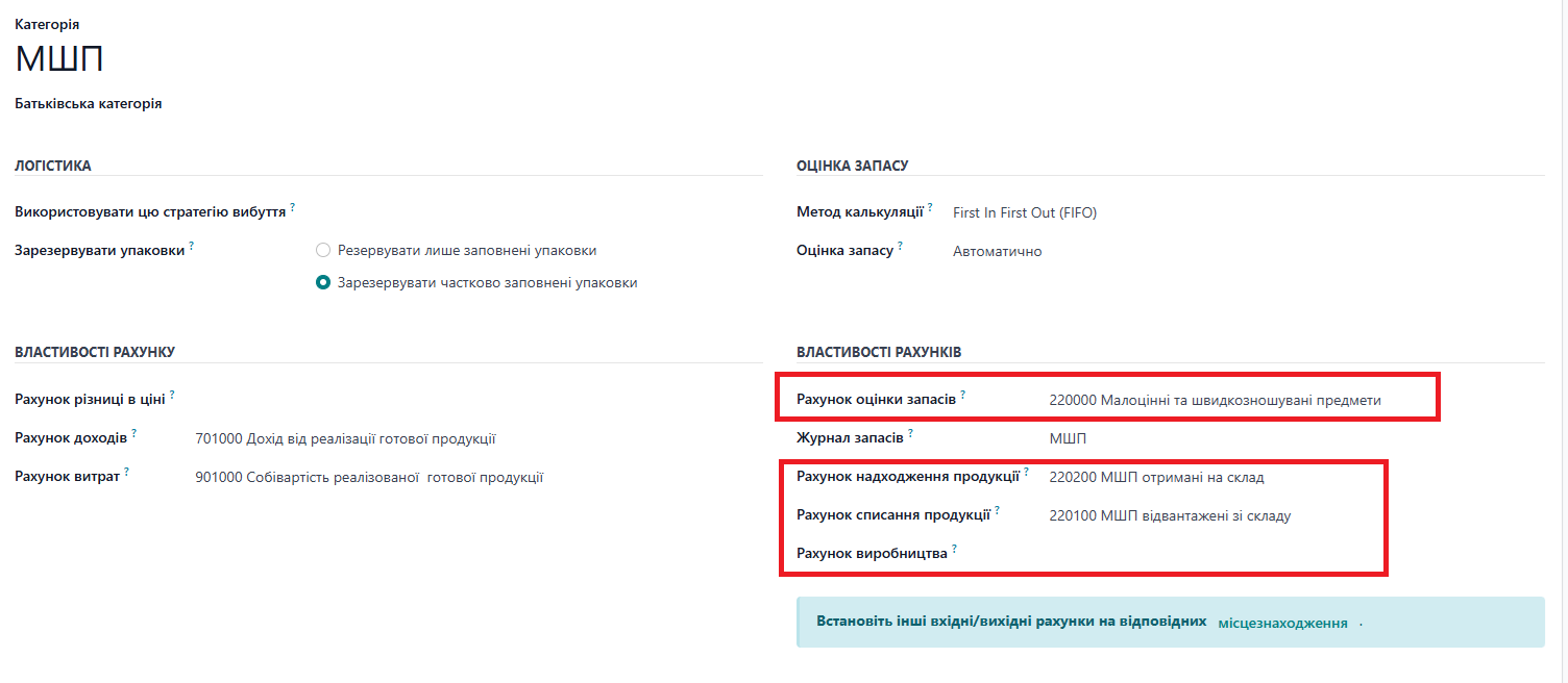 В системі автоматично створяться необхідні рахунки, журнали та складські маршрути для роботи з МШП. Рахунки ви можете їх побачити в секції МШП, та при необхідності змінити їх.