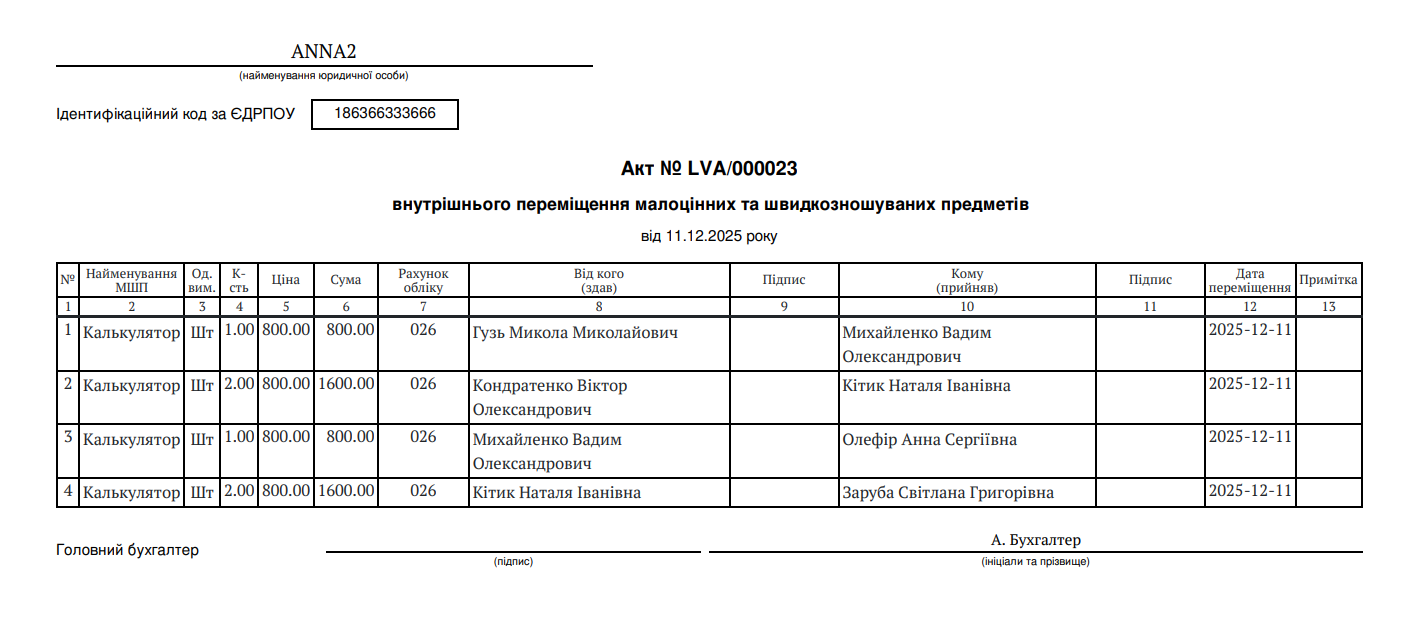 У процесі господарської діяльності підприємства часто виникає потреба у передачі малоцінних та швидкозношуваних предметів (МШП) від однієї матеріально відповідальної особи іншій. Така операція забезпечує належний облік руху активів та контроль за їх використанням.