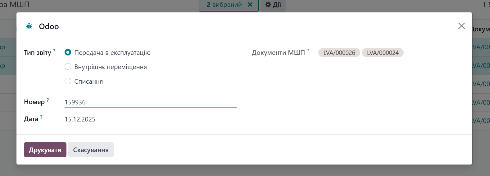 3. Масовий друк зі списку (документів і номенклатури МШП)
