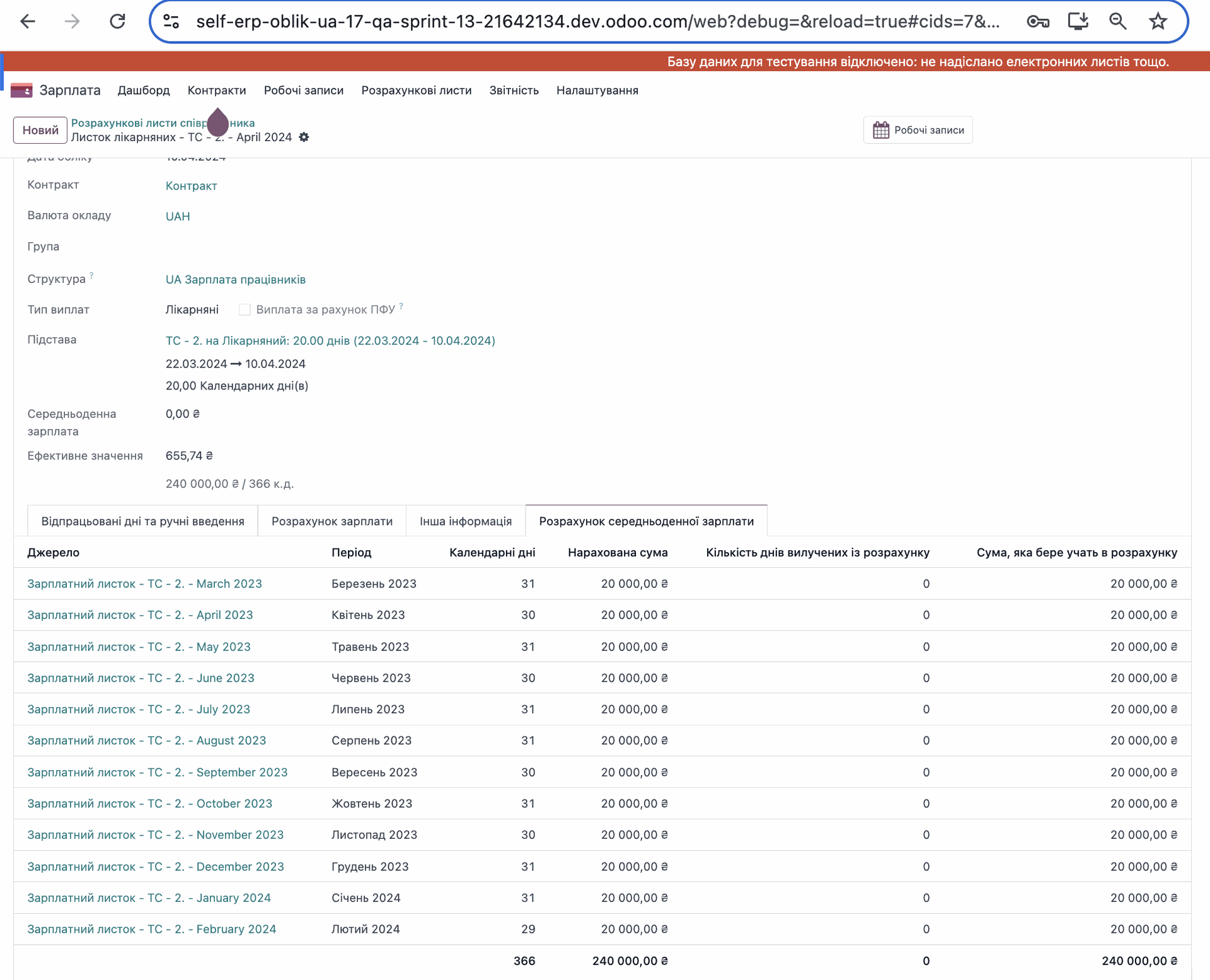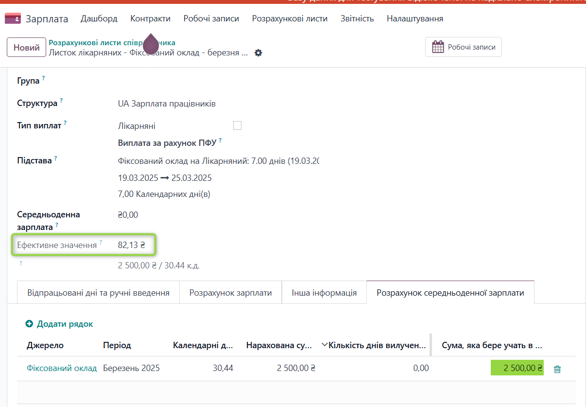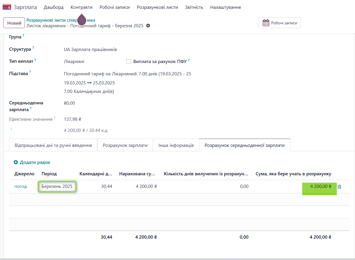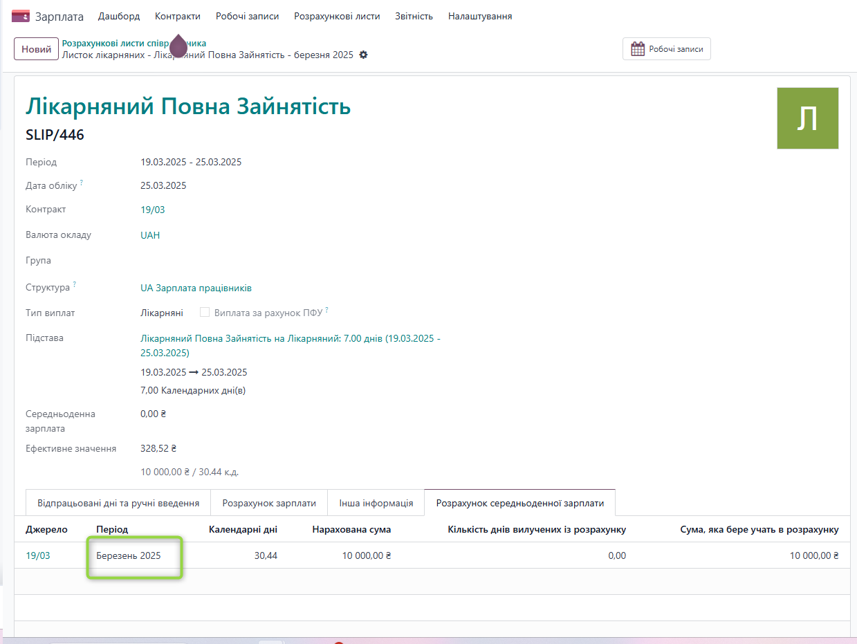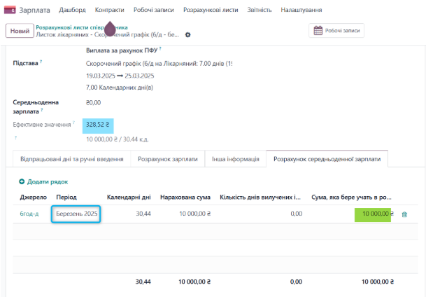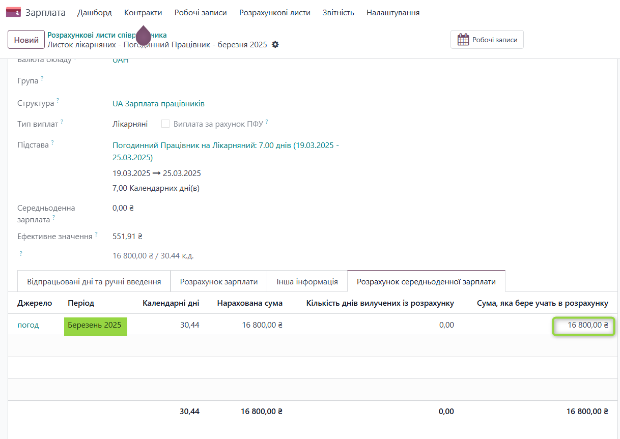 За березень місяць в системі наявний розрахунок заробітної плати, який включається до розрахунку СЗП