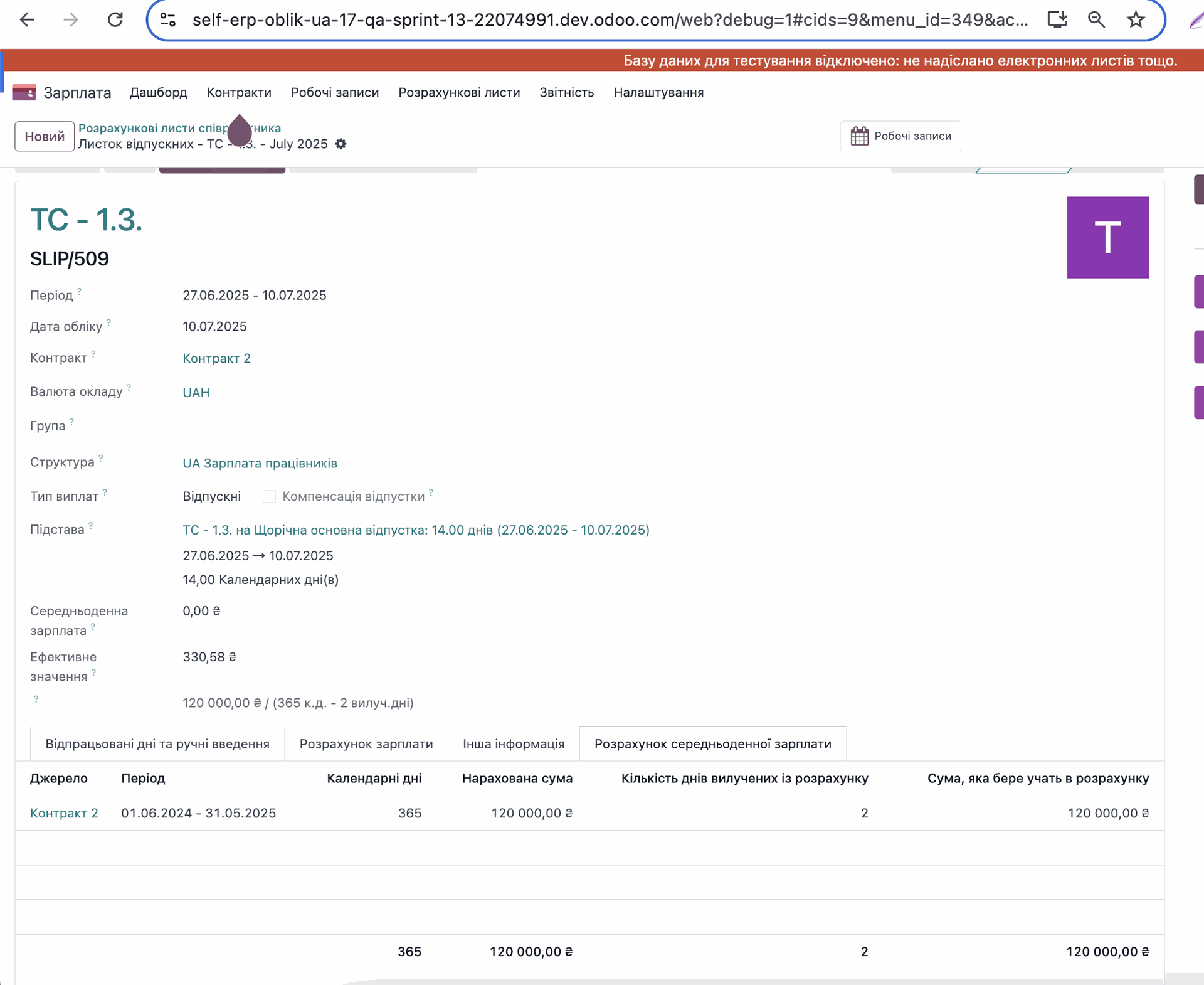 Умова: Користувач починає працювати в системі Odoo з 01.07.25 року.