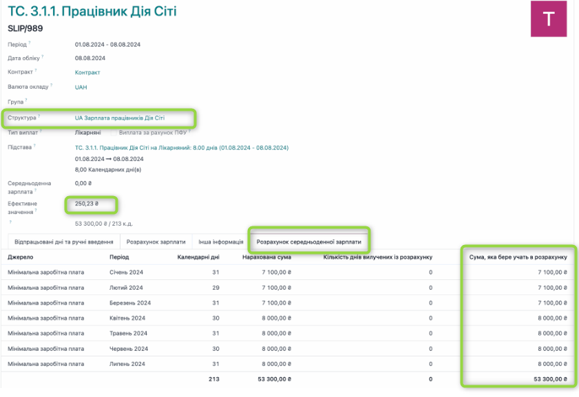 Приклад 6. Розрахунок СЗП лікарняних для підприємств Дія Сіті
