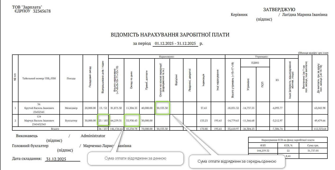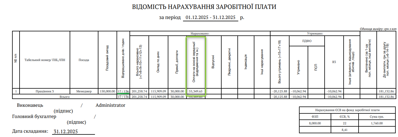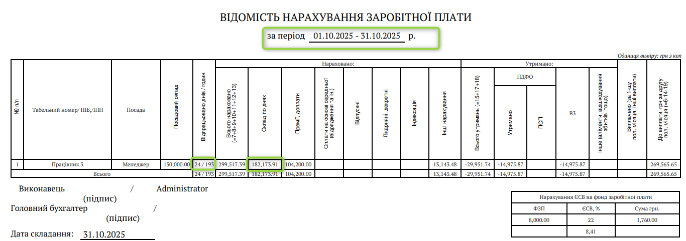 сформовані записи стають доступними для подальших розрахунків заробітної плати.