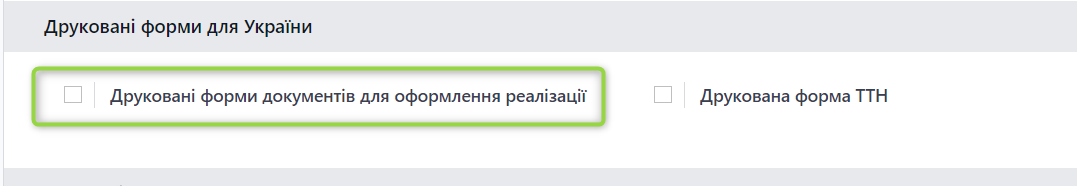 Налаштування / Облік для України / Друковані форми для України / Обрати чекбокс "Друковані форми документів для оформлення реалізації".